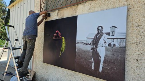 תערוכת צילום על קירות מבנים במרכז כפר יהושע.